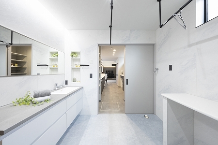 リビングの一角に在宅ワークスペースを設けたことで、仕事をしながら愛犬と一緒に快適な時間を過ごせています。休日はほぼリビングにいます。壁紙をグレーにした際は暗くならないか少し心配でしたが、思った以上に明るく落ち着いた雰囲気でとても気に入っています。ドッグランスペースでの愛犬との毎朝のコミュニケーションが日課になりました。洗濯専用のスペースを設けてもらったことで、家事がしやすく毎日の生活がより快適になりました。
