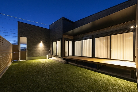 ・モノトーンでまとめたスタイリッシュな外観と、ビルトインガレージの張り出し感は、パース以上の出来栄えで大変満足しています。ガレージは夏の日差しを遮ってくれるのでとても快適です。また、夜のガレージと外壁のライトアップは昼間とは違った幻想的な雰囲気を演出してくれ、つい見入ってしまいます。ガレージとつながる玄関も人目につきにくく、とても気に入っています。友人から「かっこいいじゃん」と言われたときは、とても嬉しかったです。